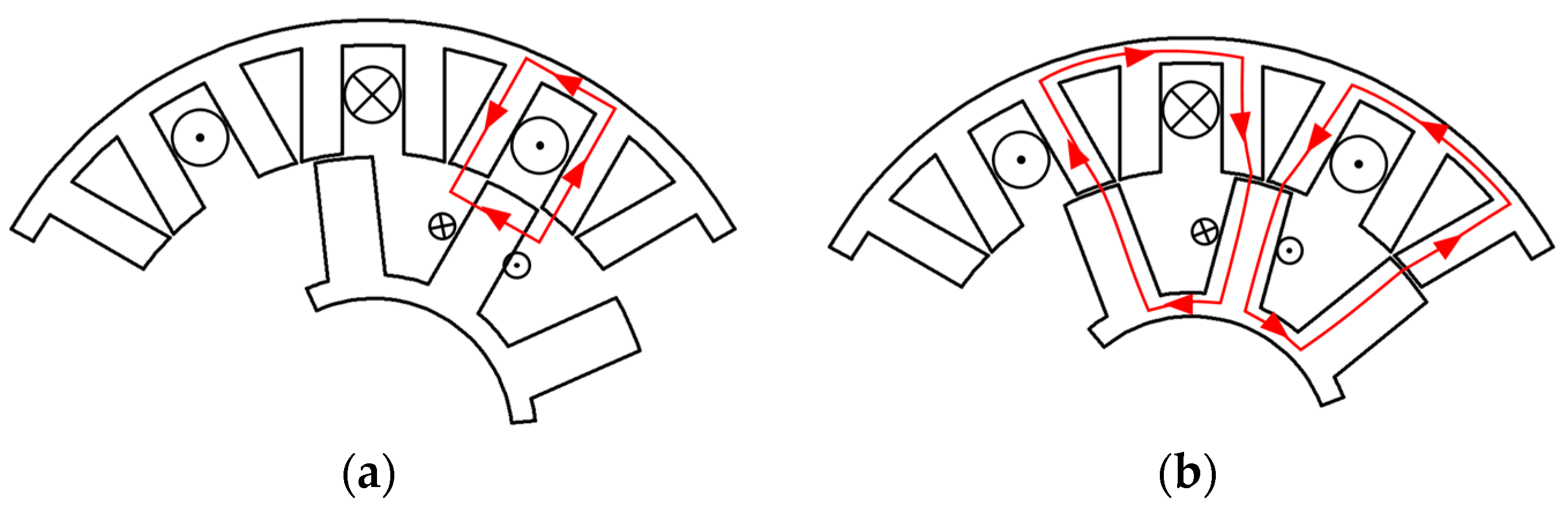 - Wu, L.; Zhu, J.; Fang, Y. A novel doubly-fed flux-switching permanent magnet machine with armature windings wound on both stator poles and rotor teeth. IEEE Trans. Ind. Electron. 2020, 67, 10223–10232. [Google Scholar] [CrossRef]