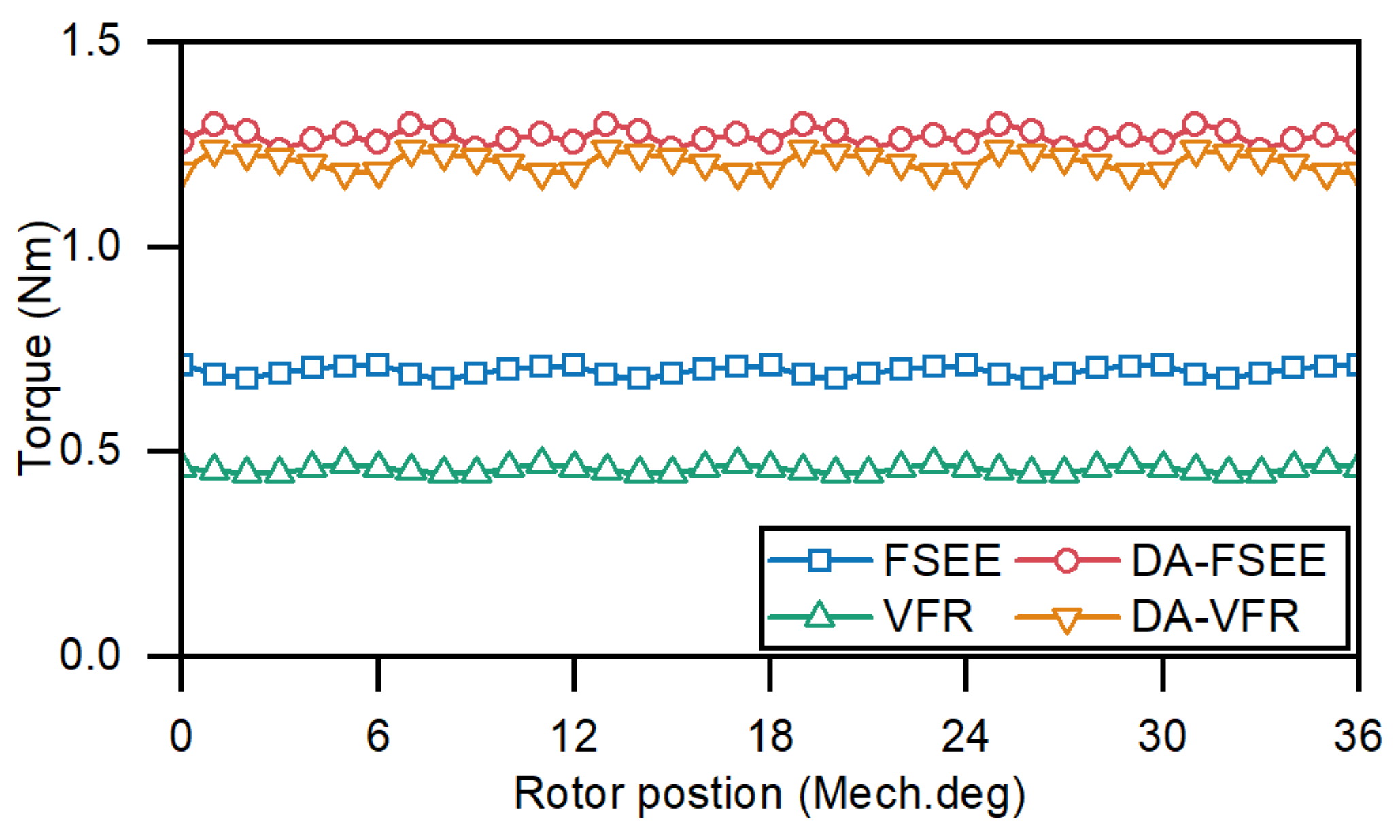 | Torque ripple | 5.0% | 5.0% | 4.9% | 4.7% |