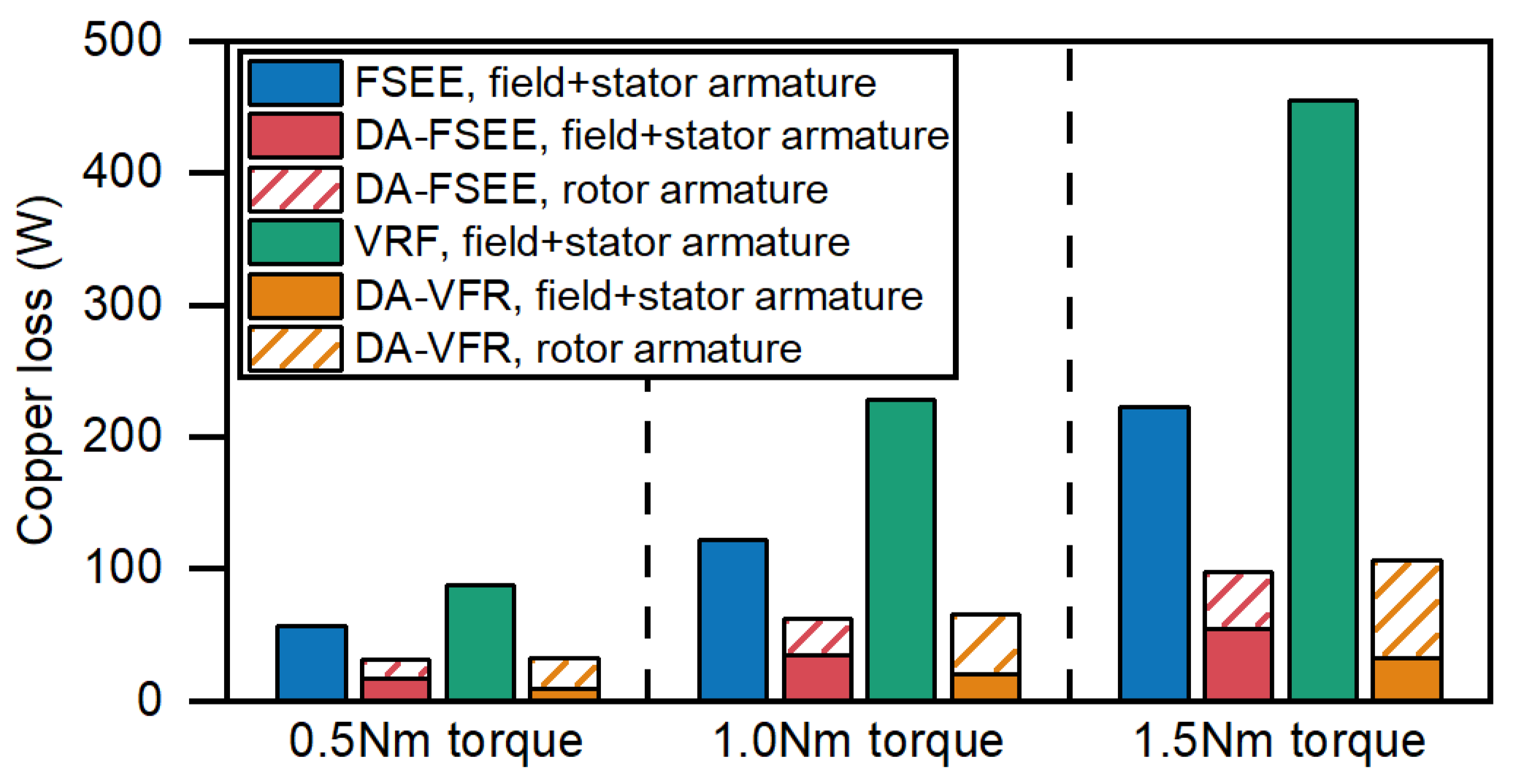 | Rotor armature copper loss, PCur | / | 35 W | / | 55 W |