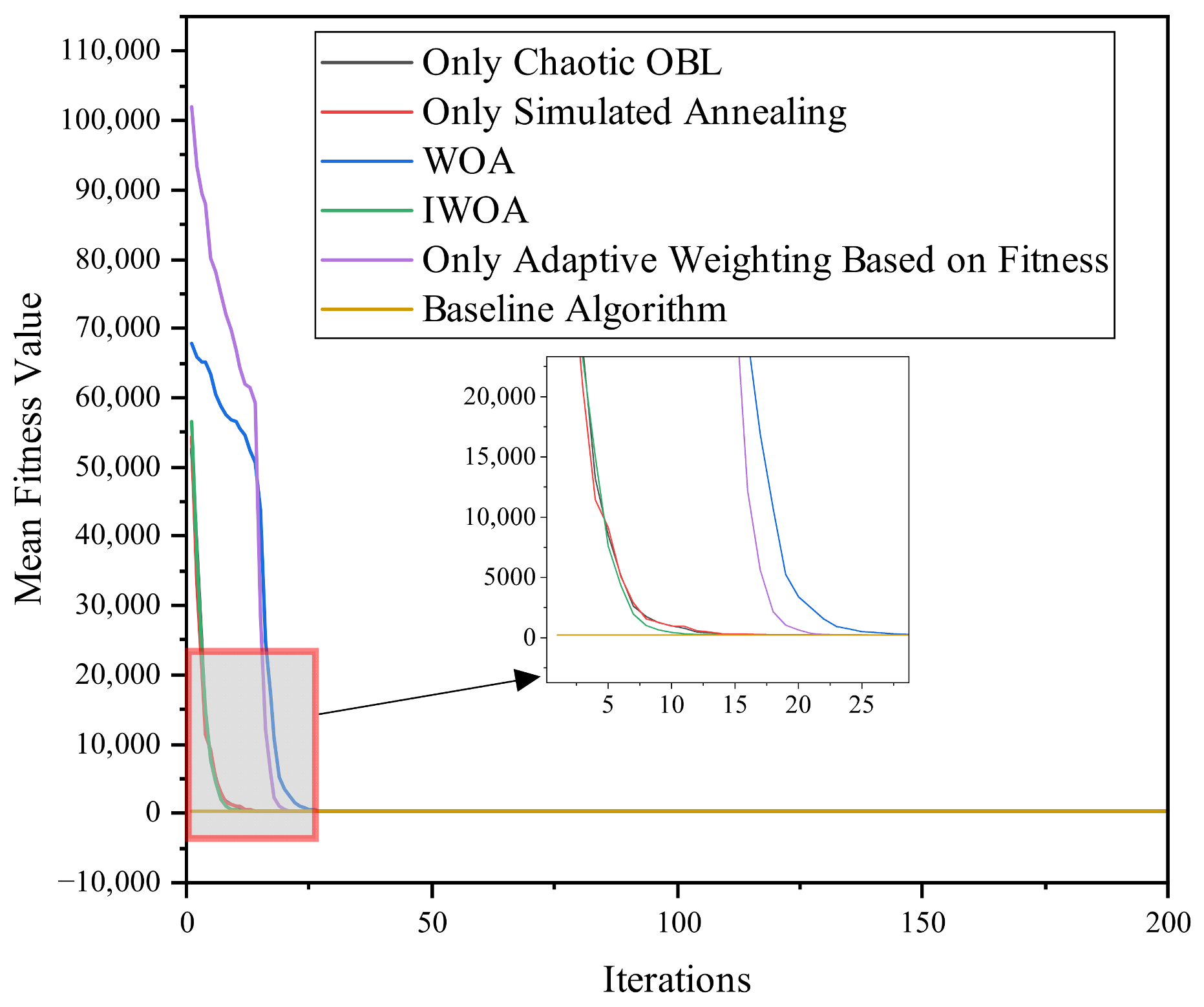 3.2. Performance Validation of the Improved Whale Optimization Algorithm