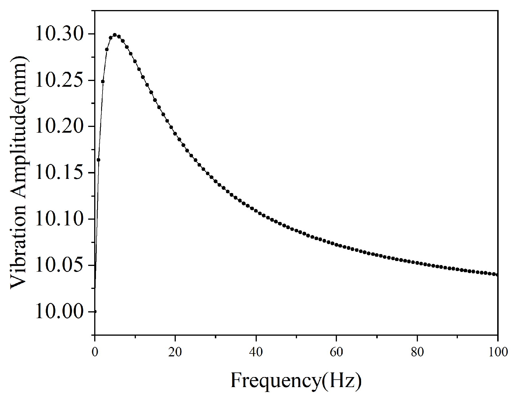 Under swept-frequency sinusoidal excitation, the system’s amplitude–frequency response exhibits an overall smooth trend. A slight amplification is observed in the low-frequency range, after which the amplitude gradually attenuates and becomes stable as the excitation frequency increases. These results indicate that the proposed control strategy provides favorable dynamic stability.