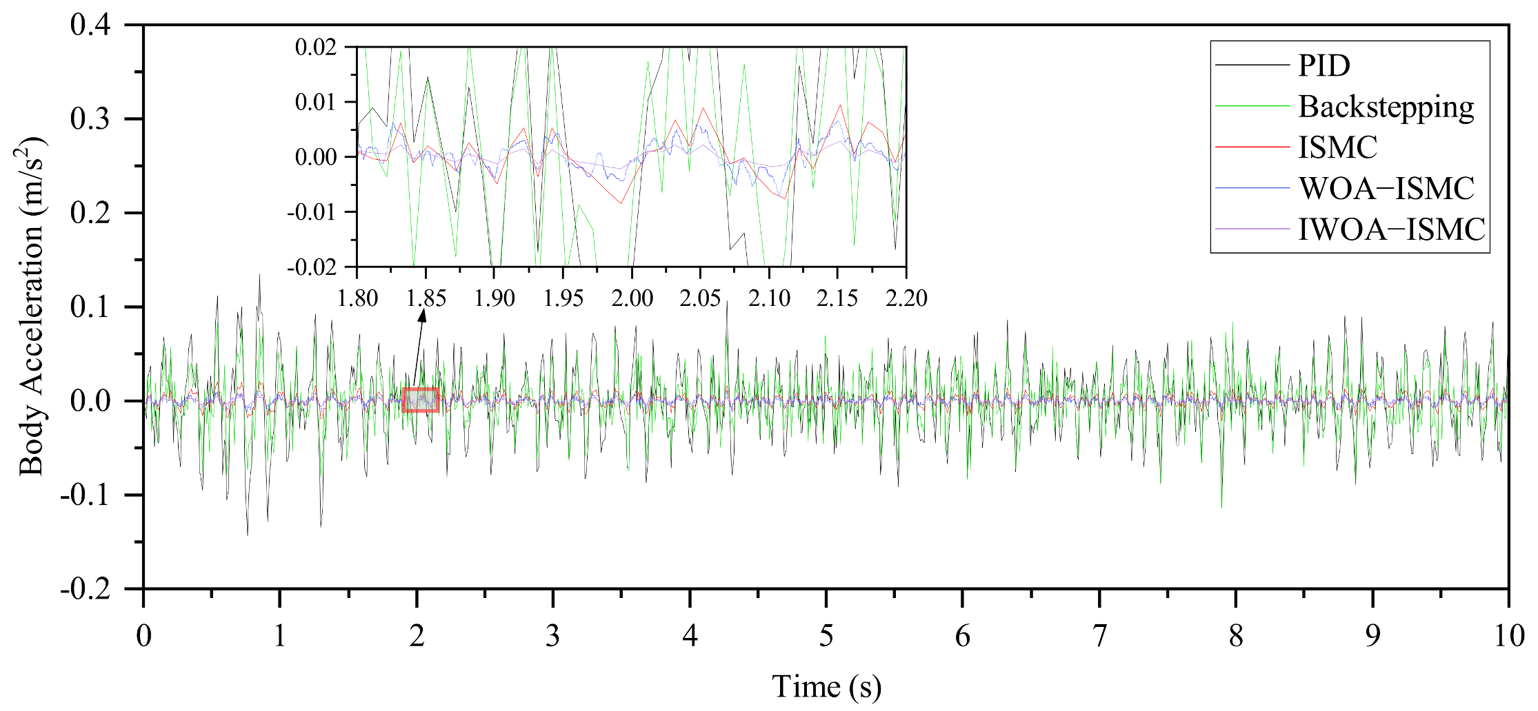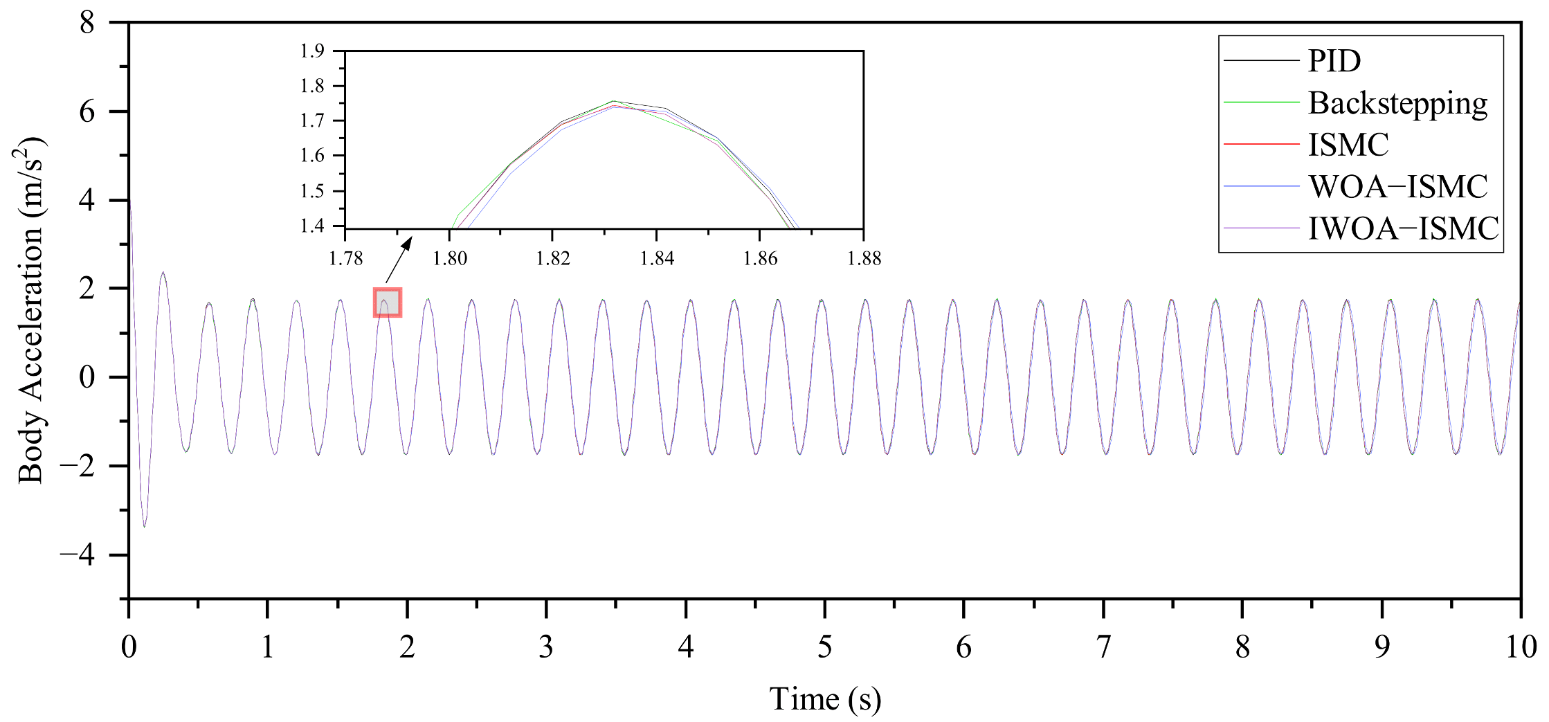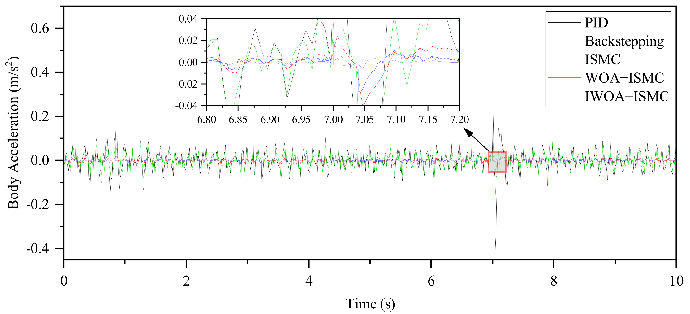Figure 11. Vehicle body acceleration response under sudden force disturbance.
