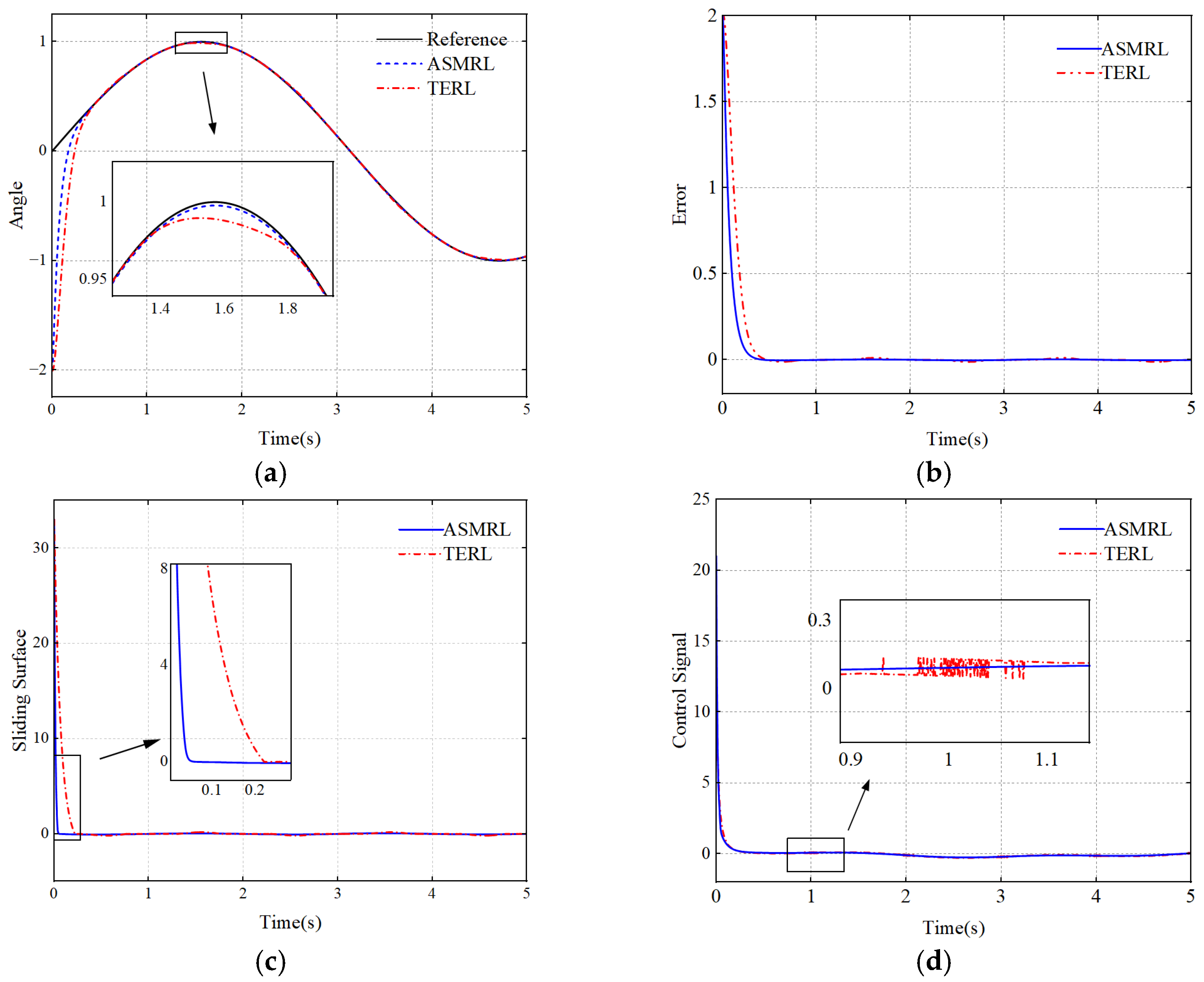 3.3. Design of an Angle Tracking Controller Based on ASMC