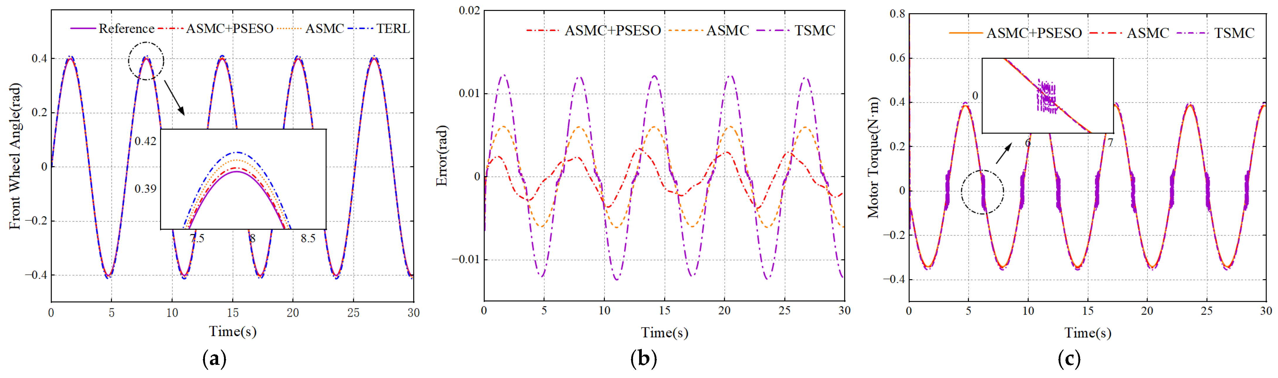 - Xu, Z.; Shi, Q.; Wei, Y.; Wang, M.; Guo, C.; He, L. A Predictive Sliding Control Algorithm and Application to Angle Following of Steer-by-Wire. IEEE Trans. Syst. Man Cybern Syst. 2025, 55, 2670–2680. [Google Scholar] [CrossRef]