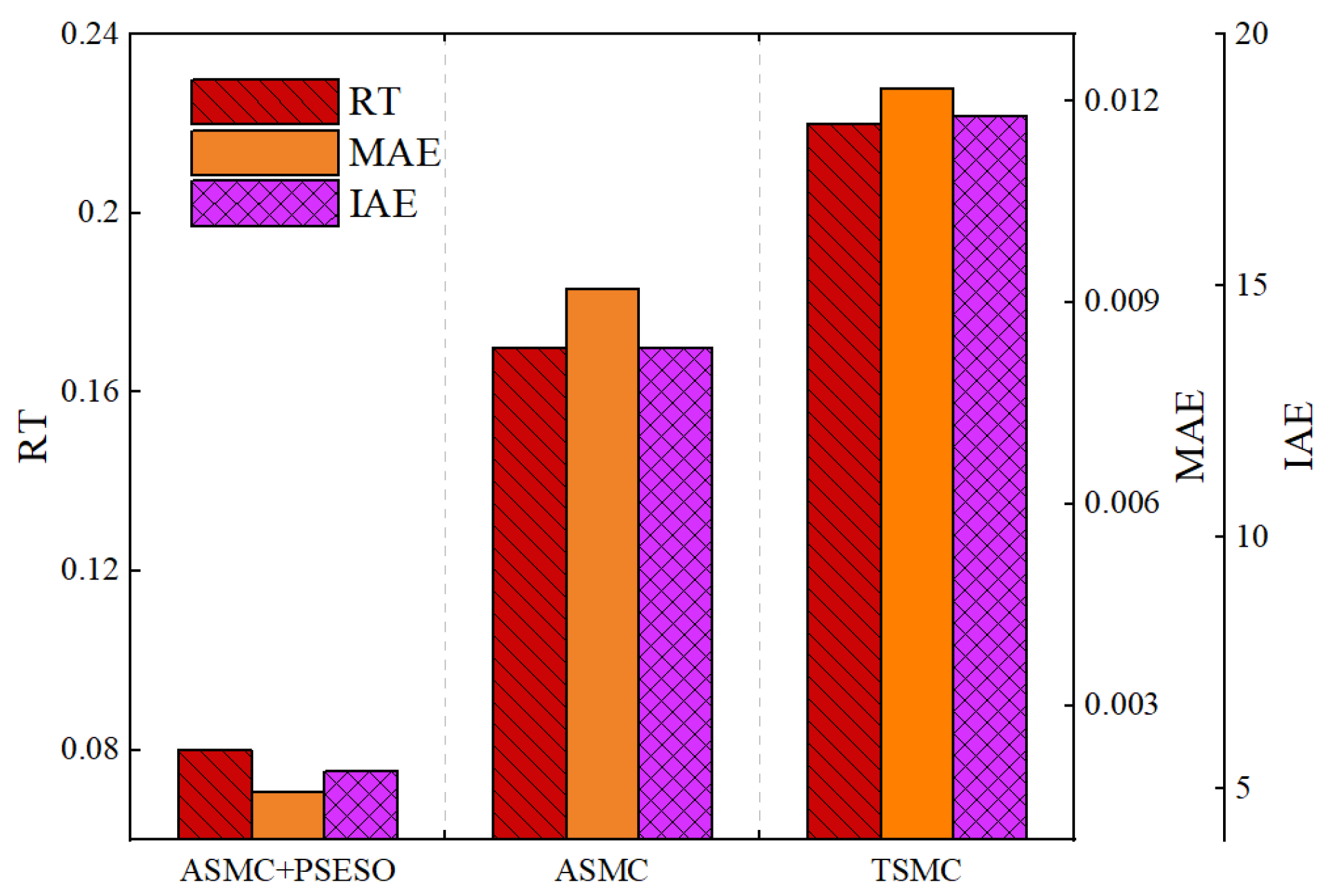 | Controllers | RT | MAE | IAE |