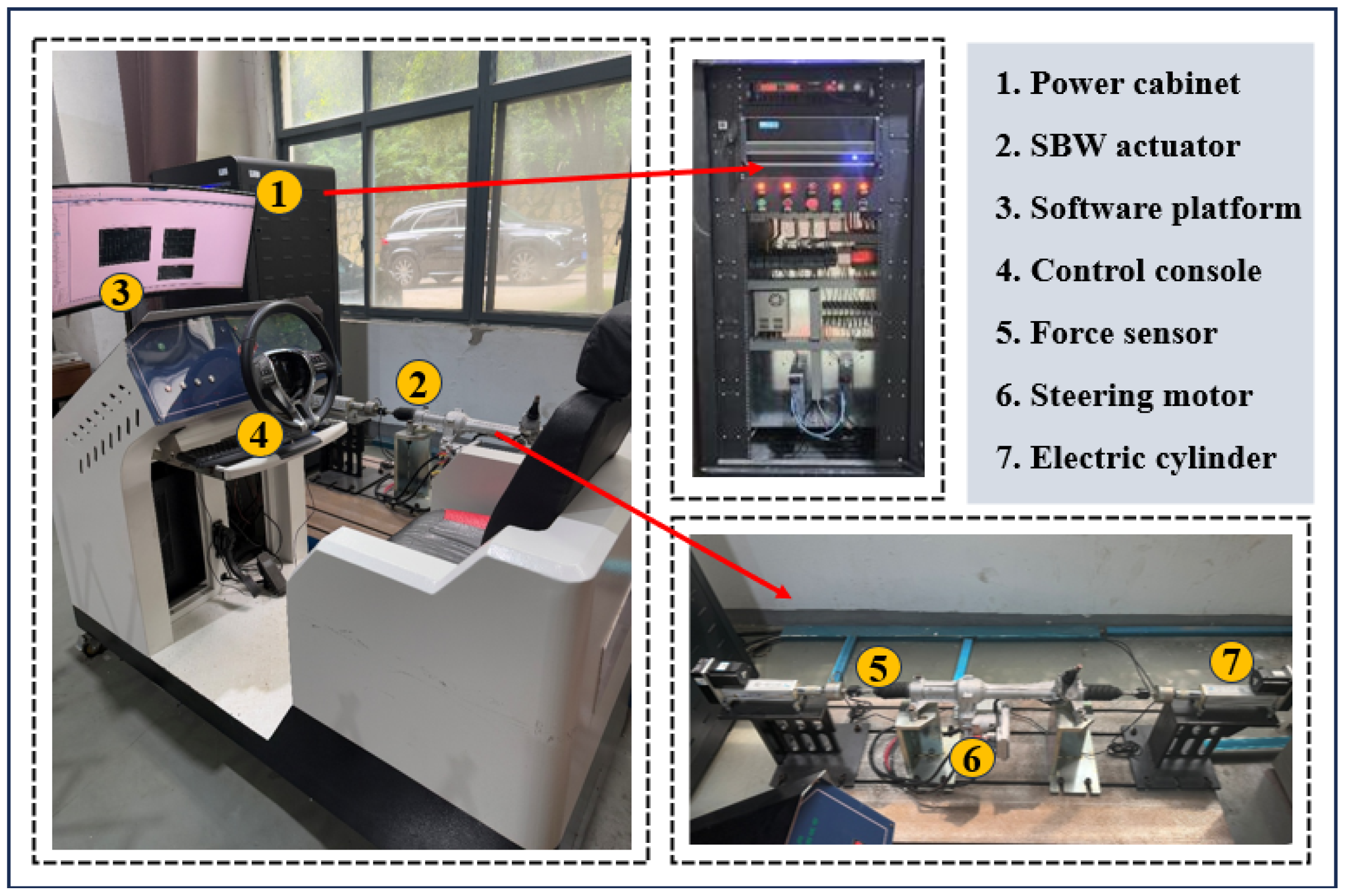 - Yang, C.; Gao, Y.; Wang, W.; Zhang, Y.; Li, Y.; Wang, X.; Zhao, X. A Synergistic Predictive Fusion Control Method and Application for Steering Feel Feedback of Steer-by-Wire System. IEEE Trans. Transp. Electrific. 2023, 9, 293–310. [Google Scholar] [CrossRef]