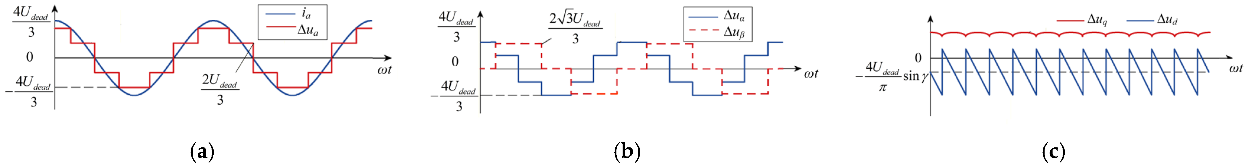 - Liu, G.; Wang, D.; Jin, Y.; Wang, M.; Zhang, P. Current-detection-independent dead-time compensation method based on terminal voltage A/D conversion for PWM VSI. IEEE Trans. Ind. Electron. 2017, 64, 7689–7699. [Google Scholar] [CrossRef]