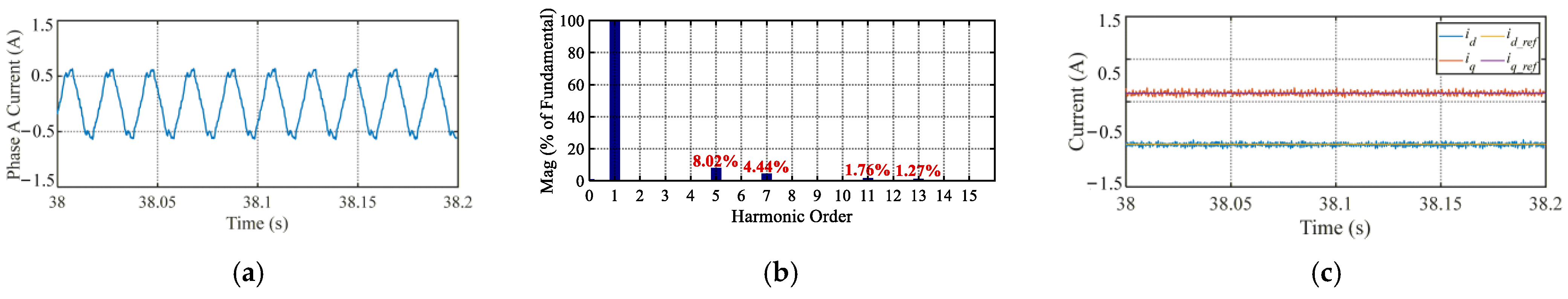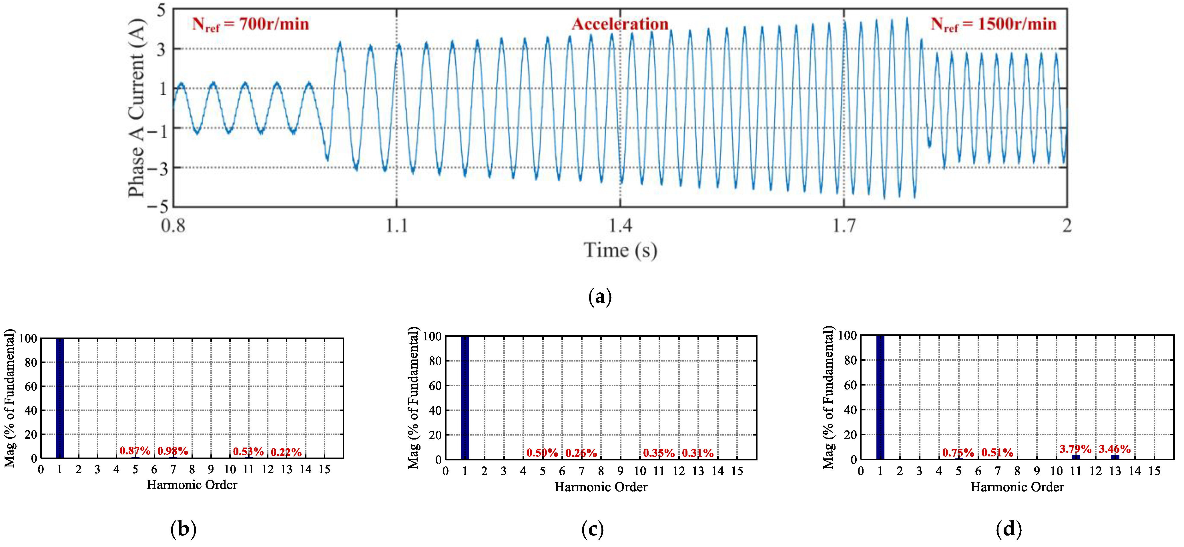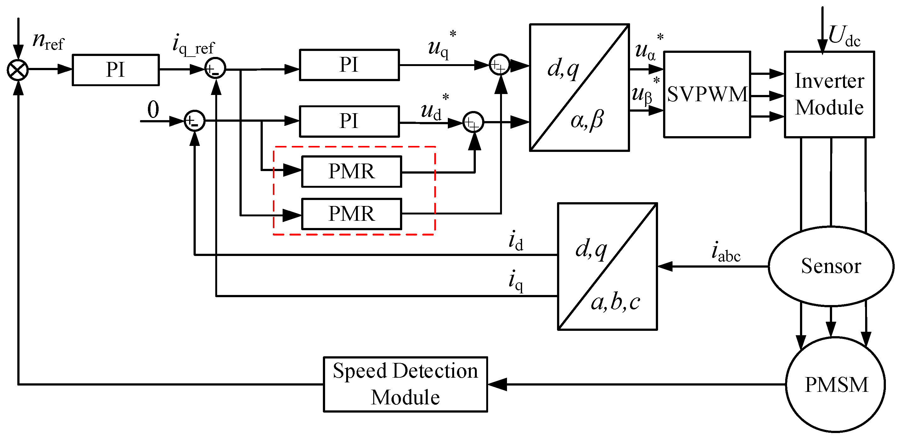 - Wu, Y.; Song, X.; Li, H.; Chen, B. Suppression of harmonic current in permanent magnet synchro-nous motors using improved repetitive controller. Electron. Lett. 2019, 55, 47–49. [Google Scholar] [CrossRef]