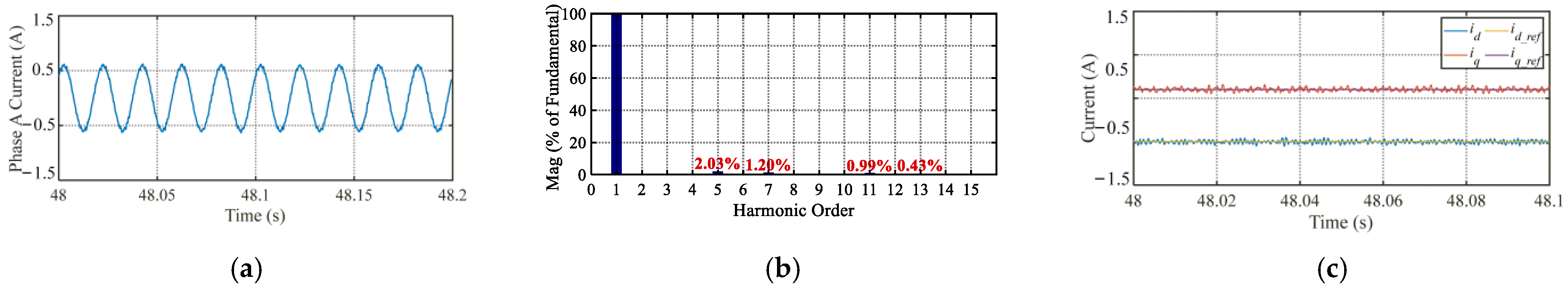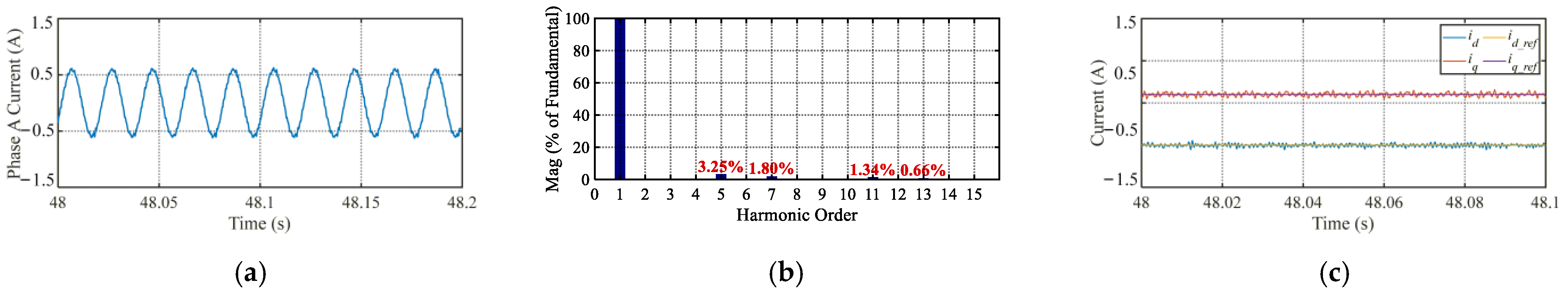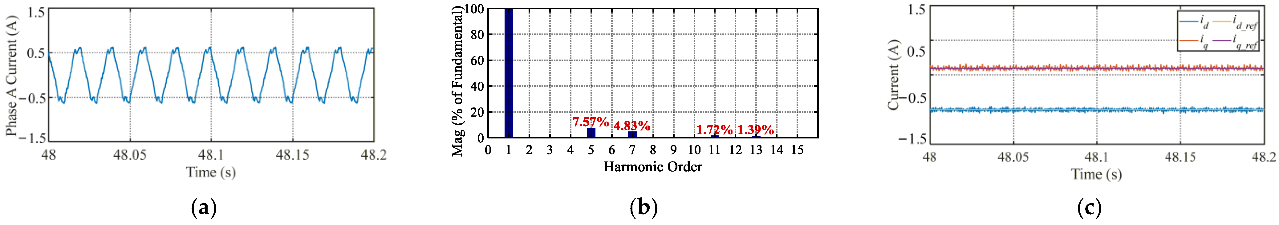 - Wu, Y.; Song, X.; Li, H.; Chen, B. Suppression of harmonic current in permanent magnet synchro-nous motors using improved repetitive controller. Electron. Lett. 2019, 55, 47–49. [Google Scholar] [CrossRef]