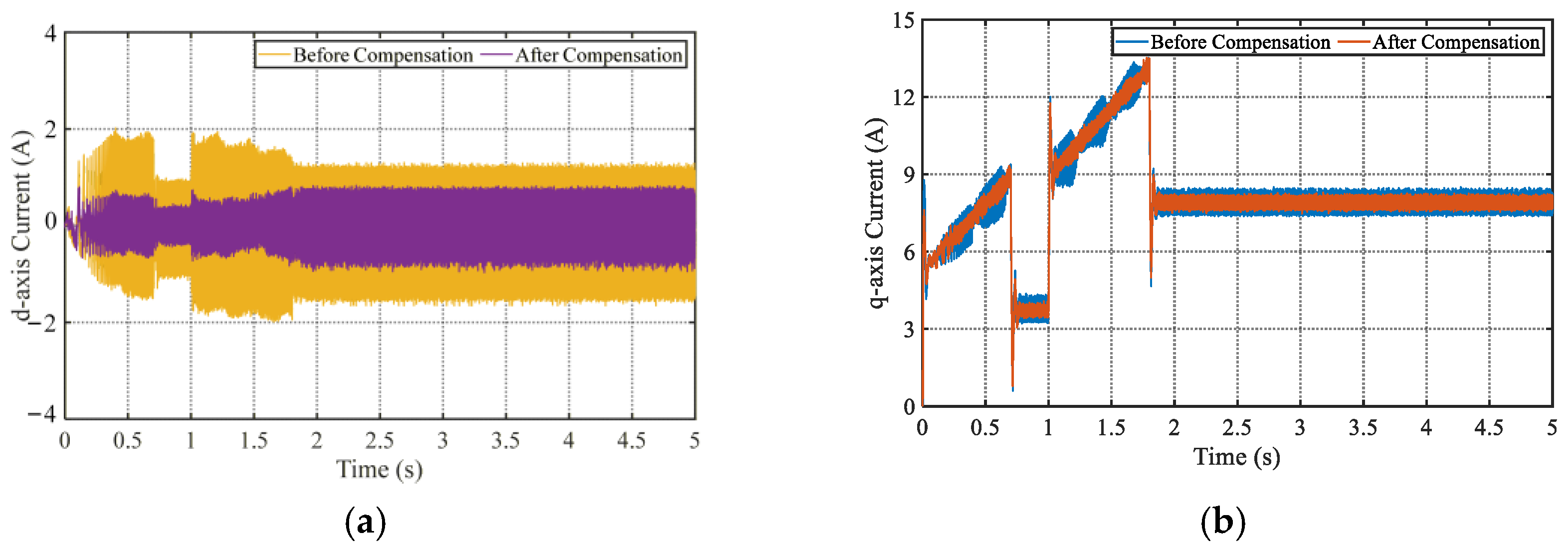 - Song, Z.; Yang, J.; Mei, X.; Tao, T.; Xu, M. Harmonic current suppression method with adaptive filter for permanent magnet synchro-nous motor. Int. J. Electron. 2021, 108, 983–1013. [Google Scholar] [CrossRef]