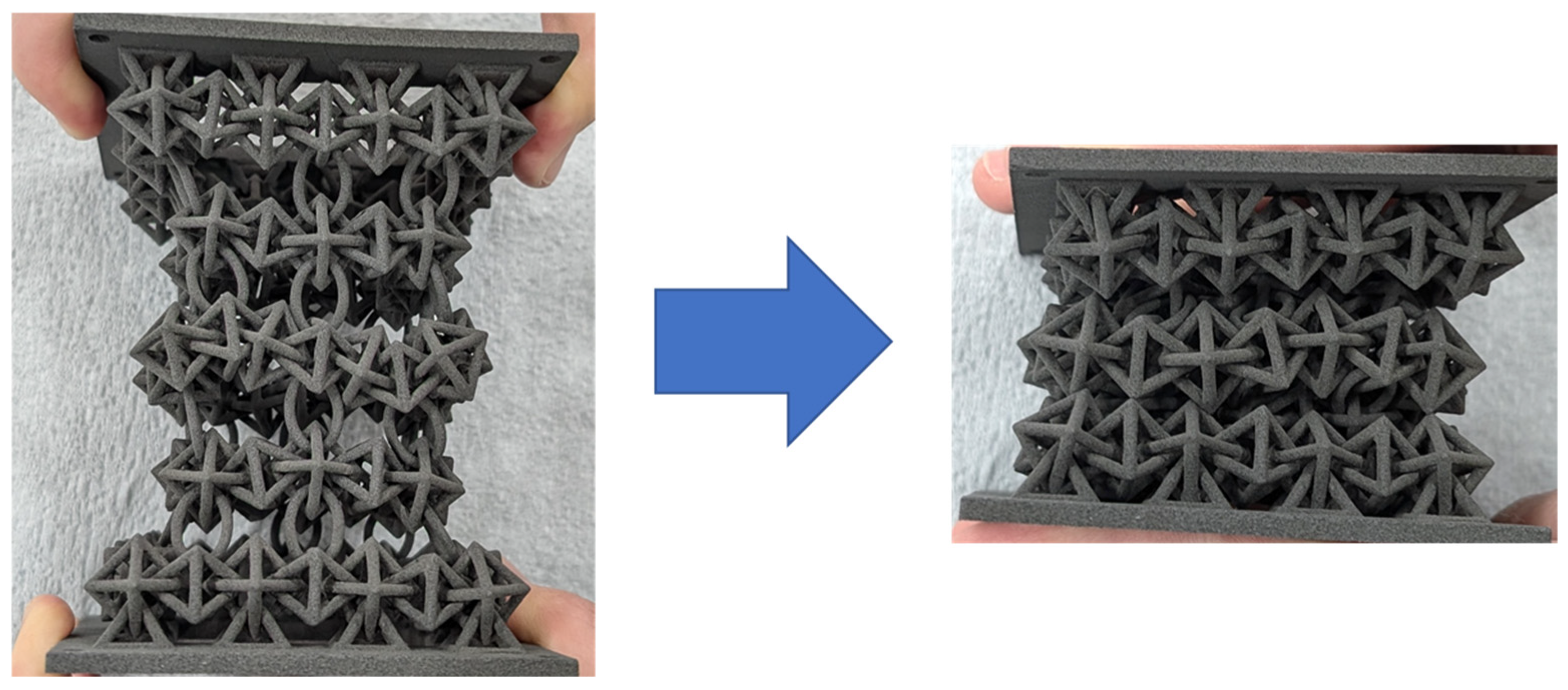 Figure 3. In this way, the alternating arrangement of square-shaped chainmail structures of different sizes within Structure B creates constrictions. When mass is applied from above, Structure B-2 is pushed inward as shown in