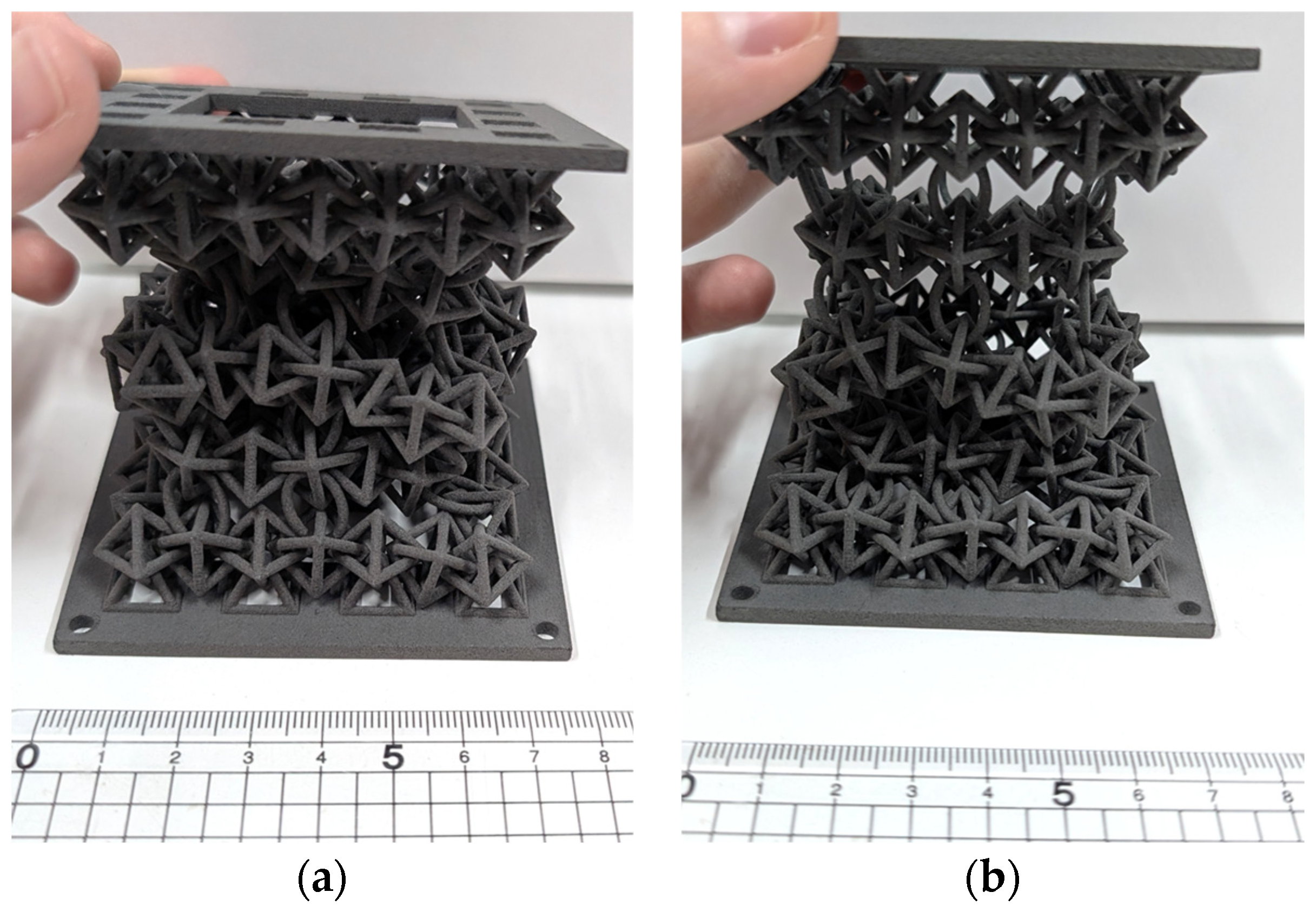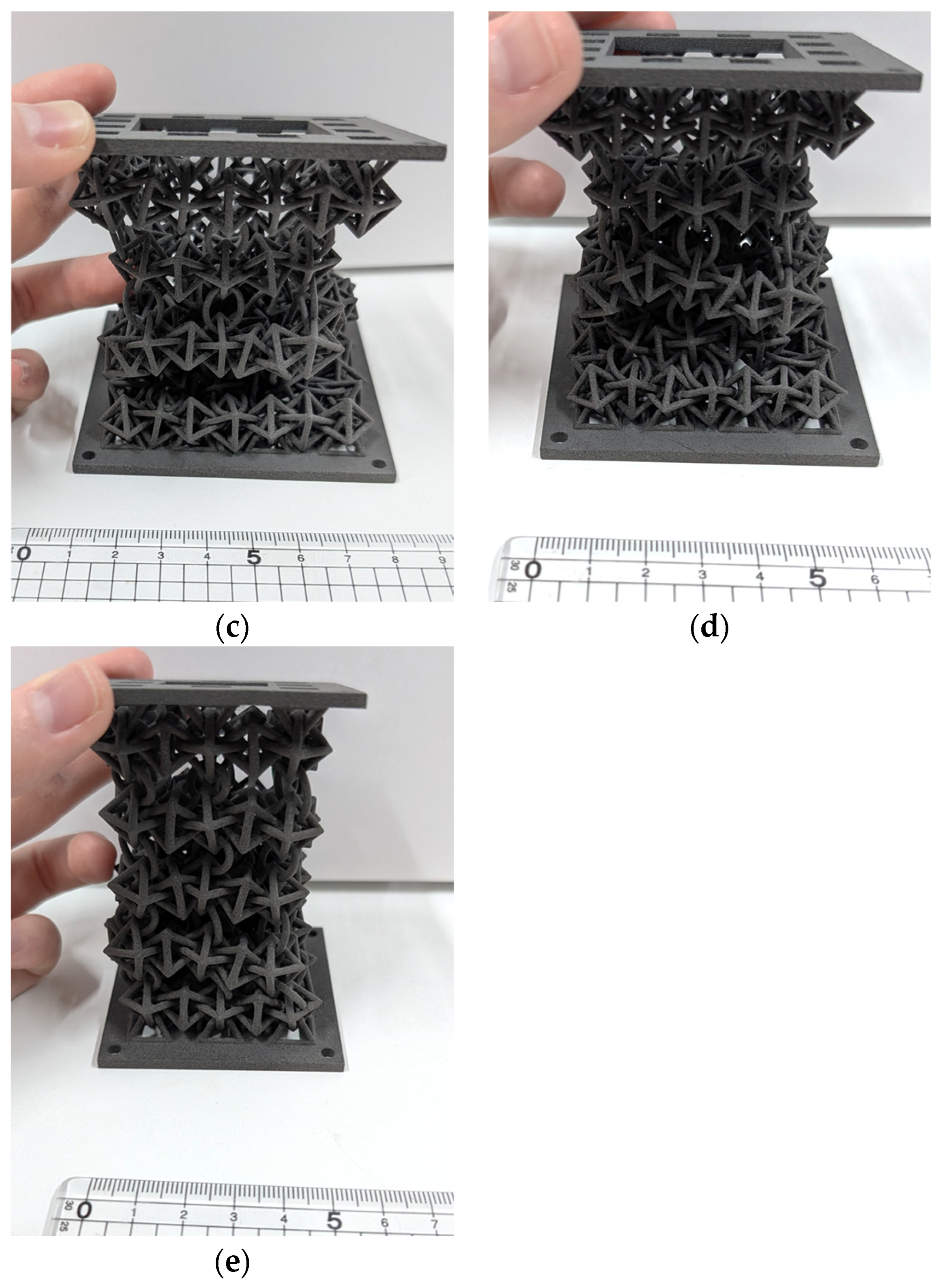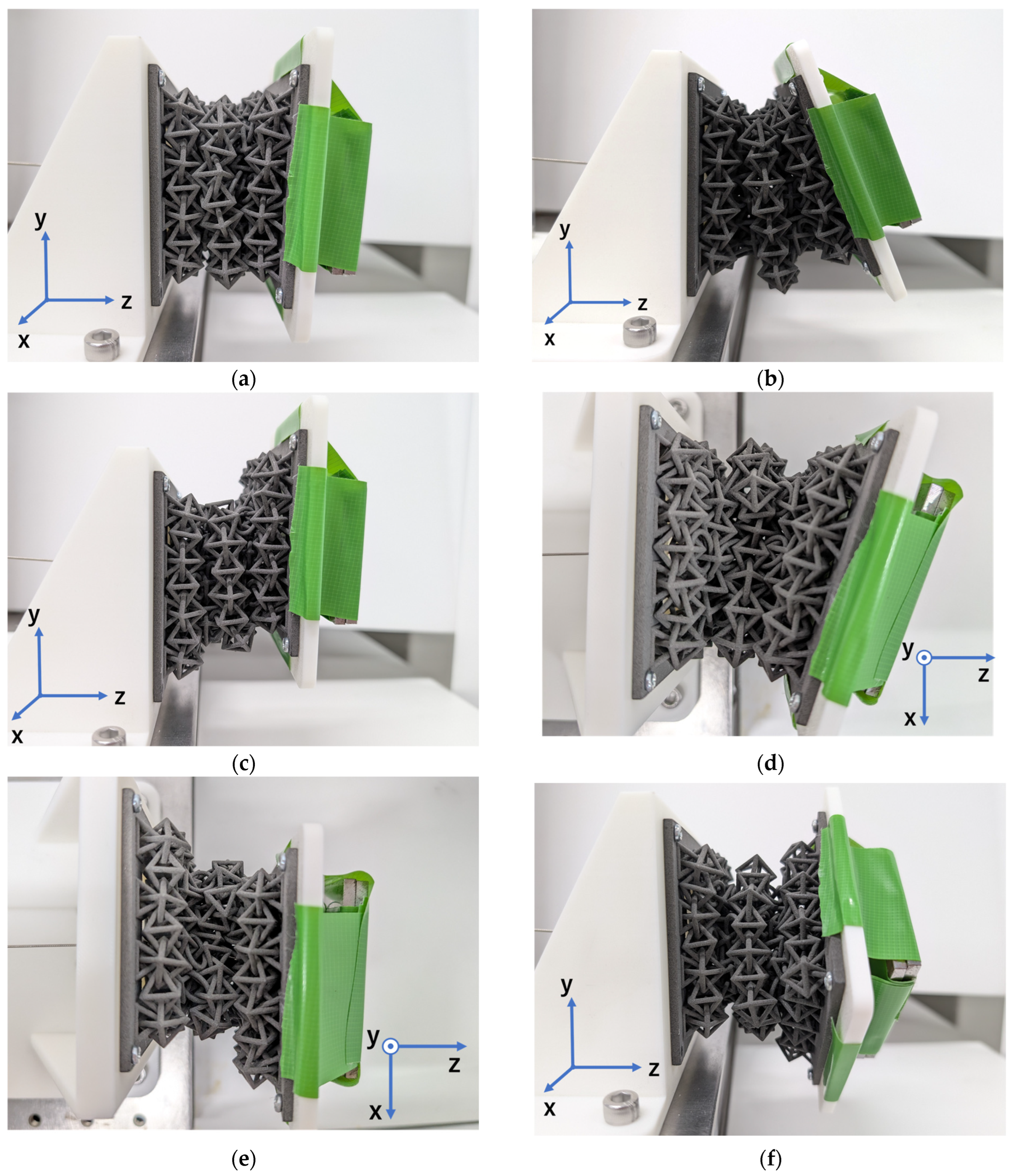 However, the proposed chainmail structure is not enclosed within a sealed bag. Therefore, a reduction in the jamming effect may occur due to applied bending and torsional moments. Additionally, impact forces and high-frequency vibrations may have an effect under dynamic conditions. These aspects could not be verified in this study.