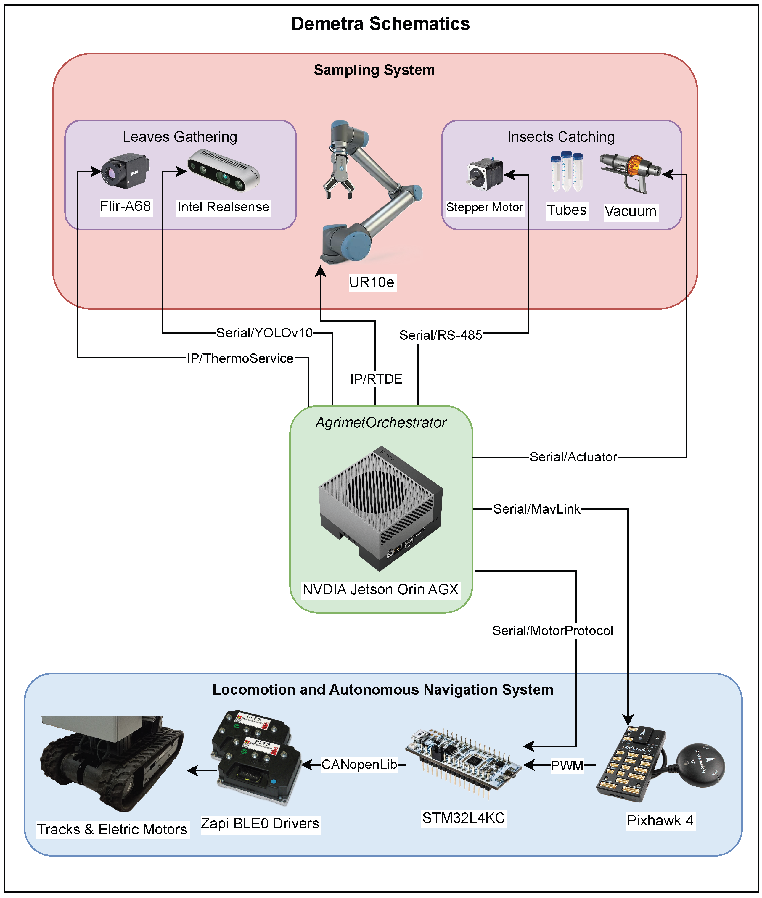 - ArmController: Manages high-level manipulation tasks for the UR10e robotic arm via the RTDE protocol. It integrates vision-based spatial data to execute autonomous leaf and insect sampling workflows.