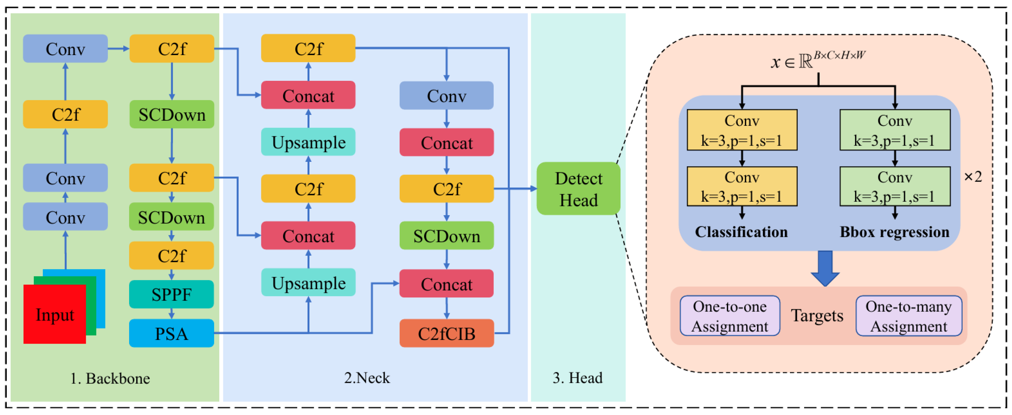 - NMS-free Architecture: Elimination of non-maximum suppression post-processing through dual assignment strategy, which drastically reduces inference times.