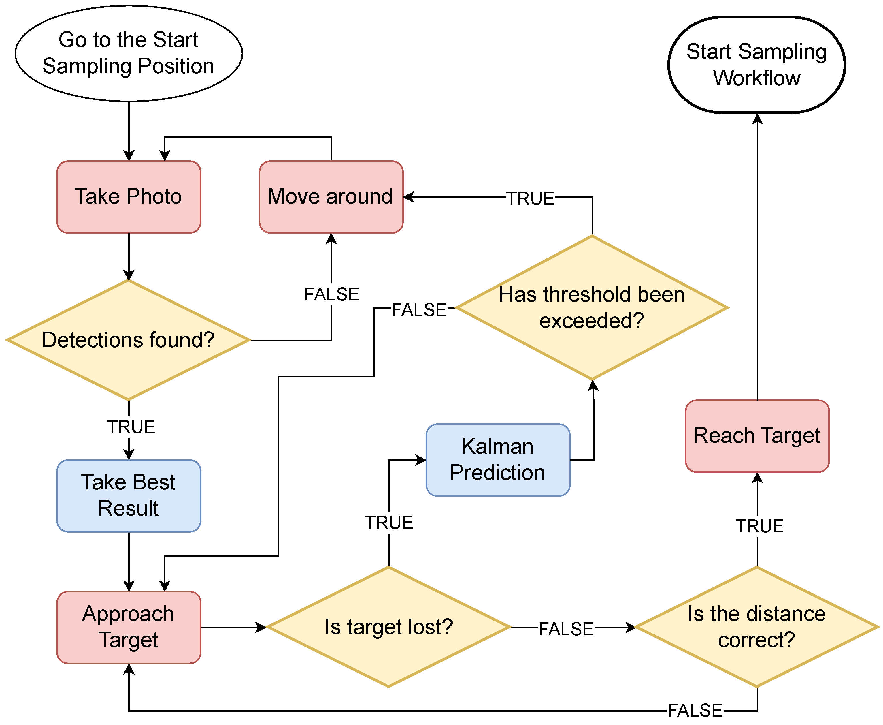 - VisionController: Performs real-time grapevine leaf detection using an optimised YOLOv10 model. It processes RGB frames from the RealSense camera, applies target selection logic, and uses Kalman filtering to stabilise 3D leaf coordinates, ensuring robust tracking under dynamic vineyard conditions.