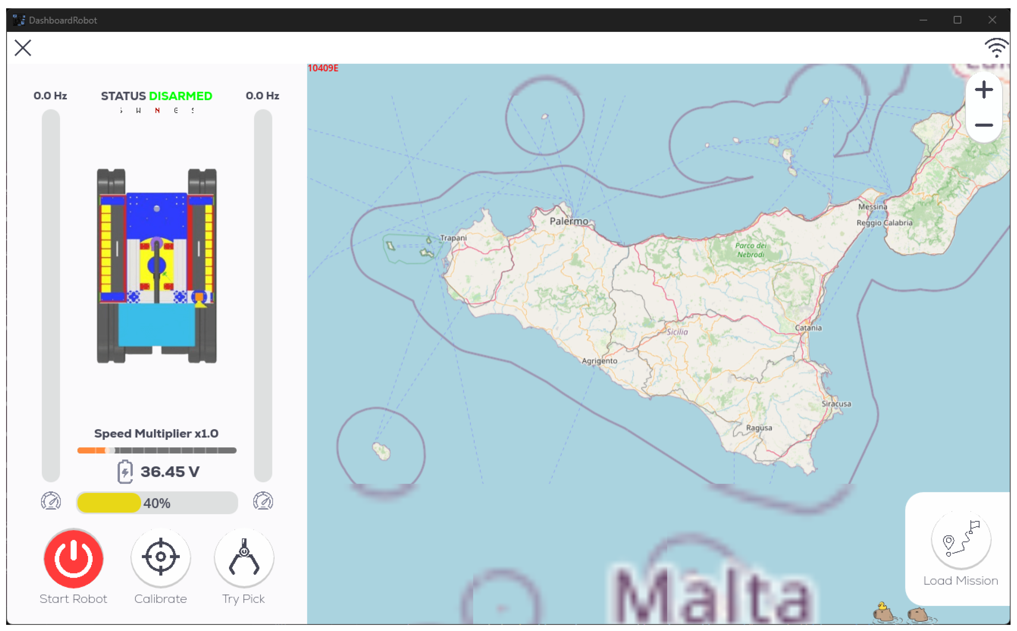 - Motors Module: Establishes and maintains a serial connection with the STM32L4KC microcontroller and runs a persistent background thread to provide three core capabilities: real-time motor telemetry acquisition (including operational status, current consumption, and performance metrics); motor control operations such as activation, deactivation, and automated calibration of tracked drive motors; and data logging management for enabling or disabling comprehensive performance logs for diagnostics and analysis.