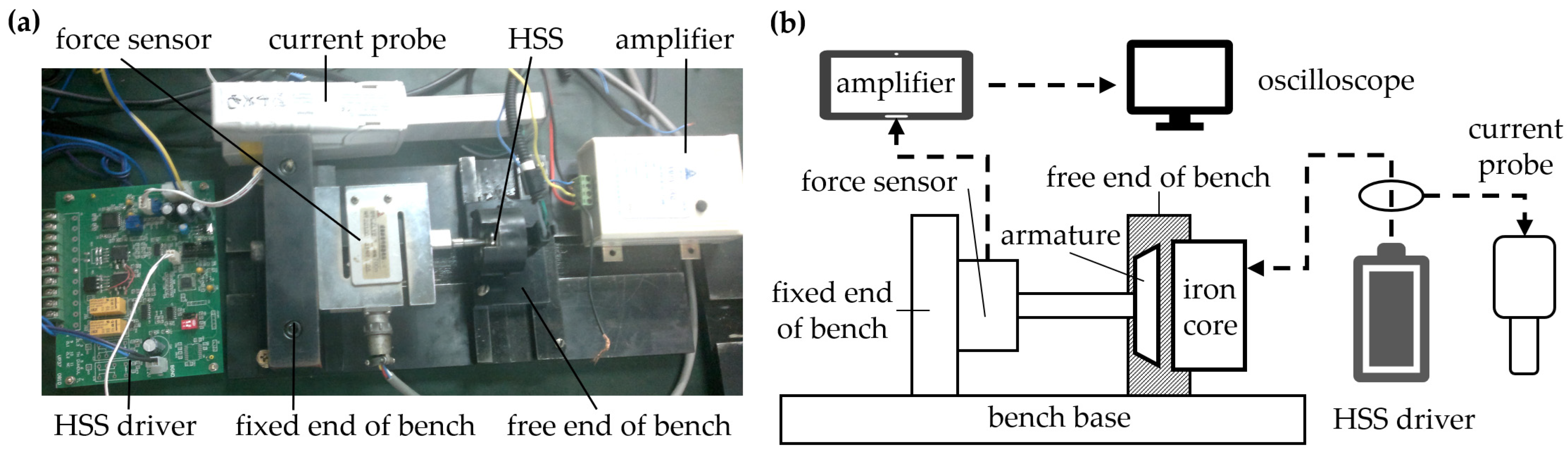 - Seilly, A. Colenoid actuators-further developments in extremely fast acting solenoids. In SAE International Congress and Exposition; SAE Paper 810462; SAE Technical Paper: Warrendale, PA, USA, 1981. [Google Scholar]