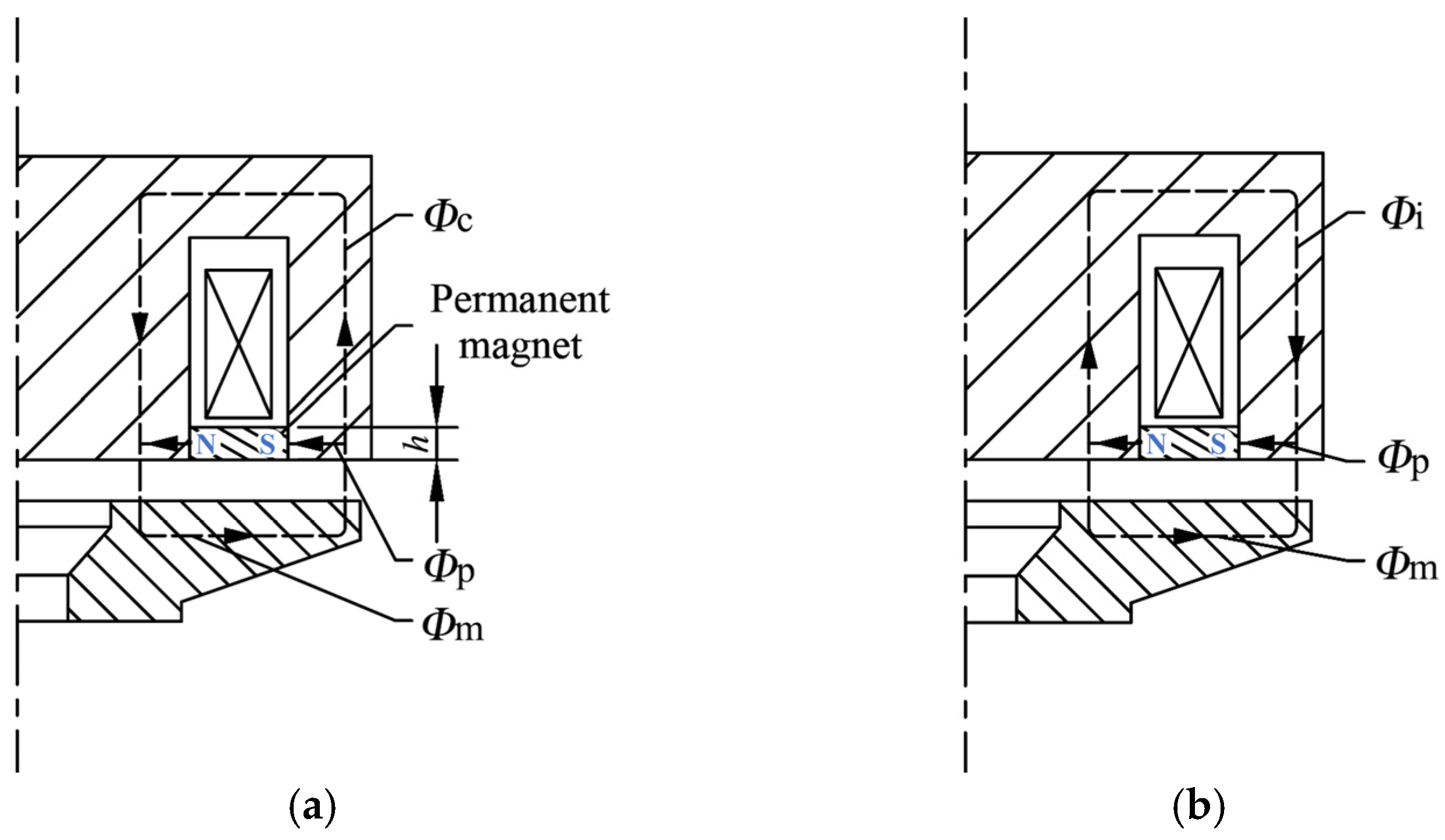 - Rens, J.; Clark, R.; Jewell, G. Static performance of a polarized permanent-magnet reluctance actuator for internal combustion engine valve actuation. IEEE. Trans. Magn. 2006, 42, 2063–2070. [Google Scholar] [CrossRef]