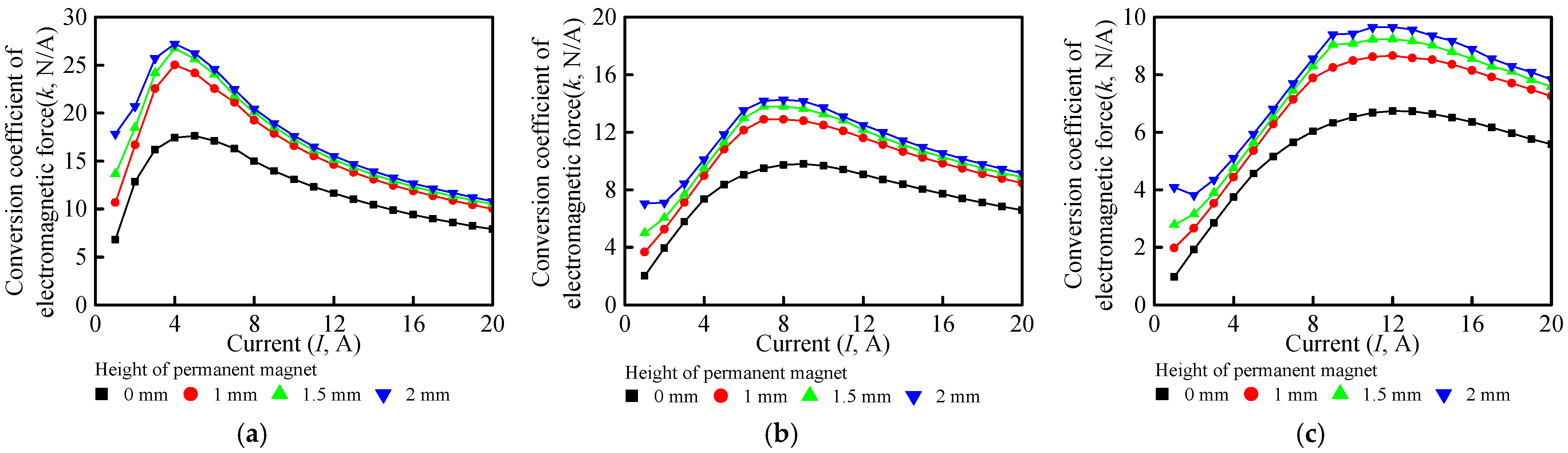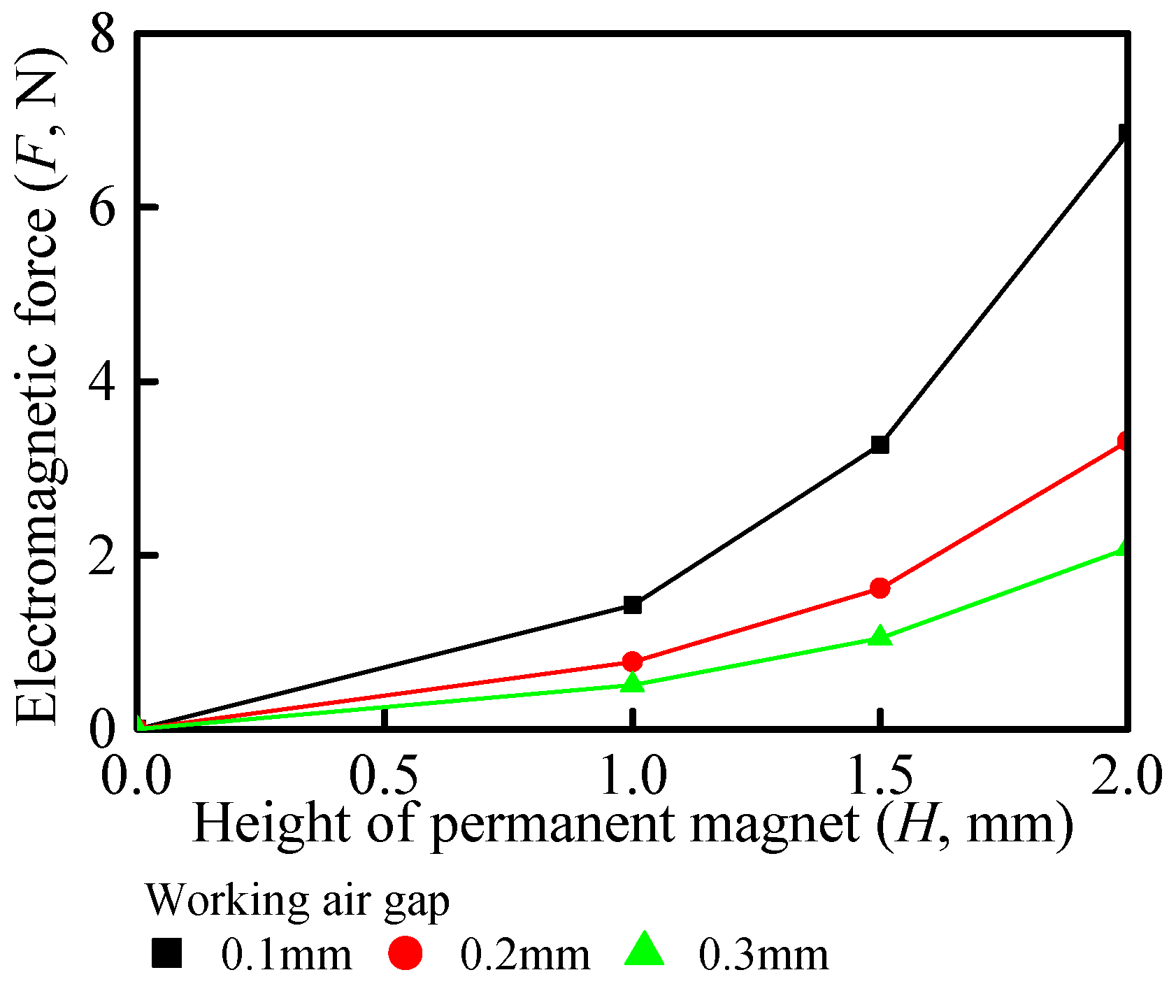 - The electromagnetic energy conversion efficiency and the electromagnetic force of an HSS can be promoted by applying a PM, and the bigger the PM height is, the higher the energy conversion efficiency is. The PM then plays more important role in the electromagnetic energy conversion and the increase in electromagnetic force at low current. In addition, the magnetic saturation within the main pole can be weakened by applying a PM.