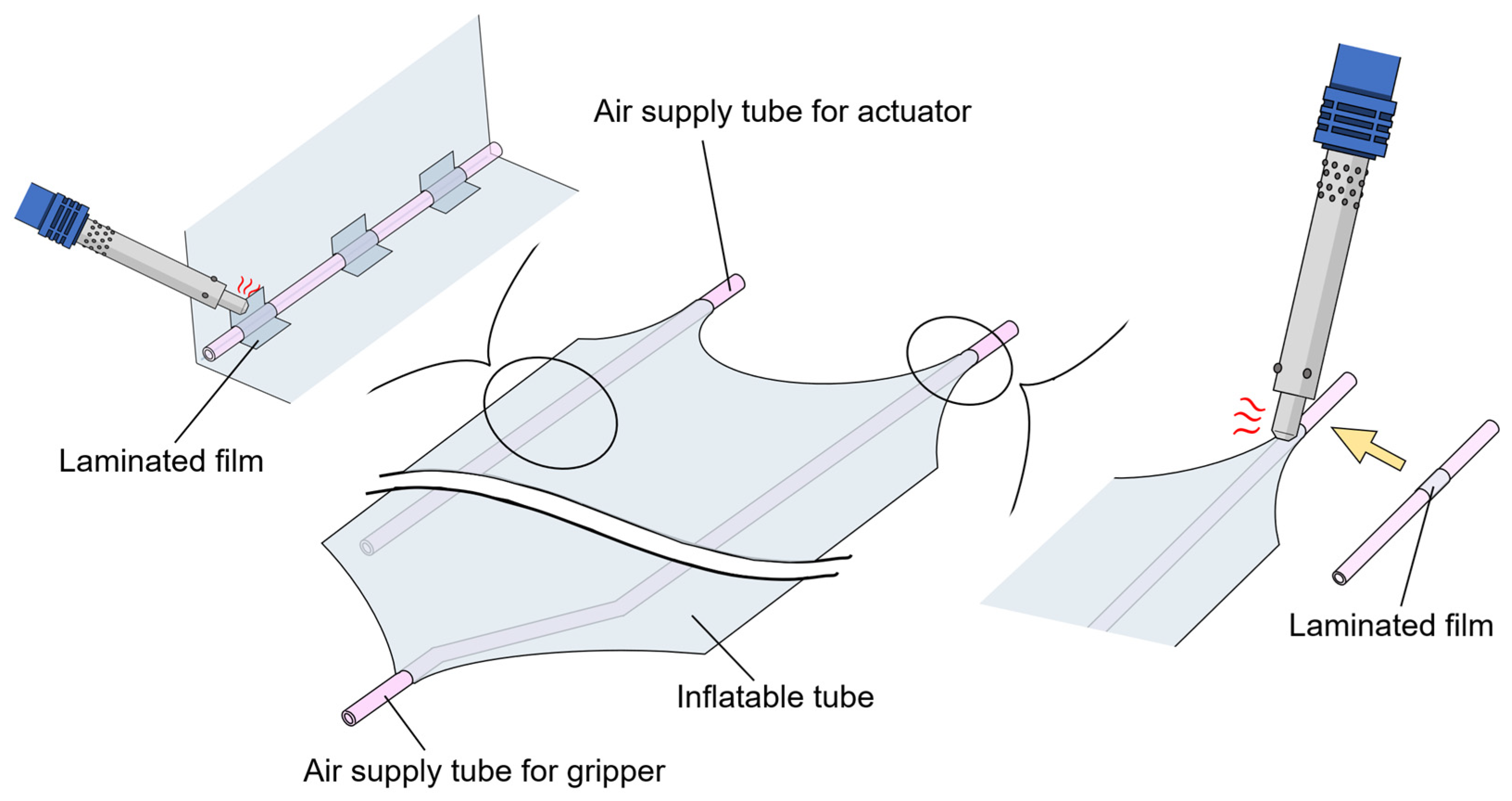 An experiment was conducted to evaluate the influence of the air supply tubes. Here, two types of inflatable tubes were prepared: one with an air supply tube fixed inside and another with an air supply tube connected outside, as shown in