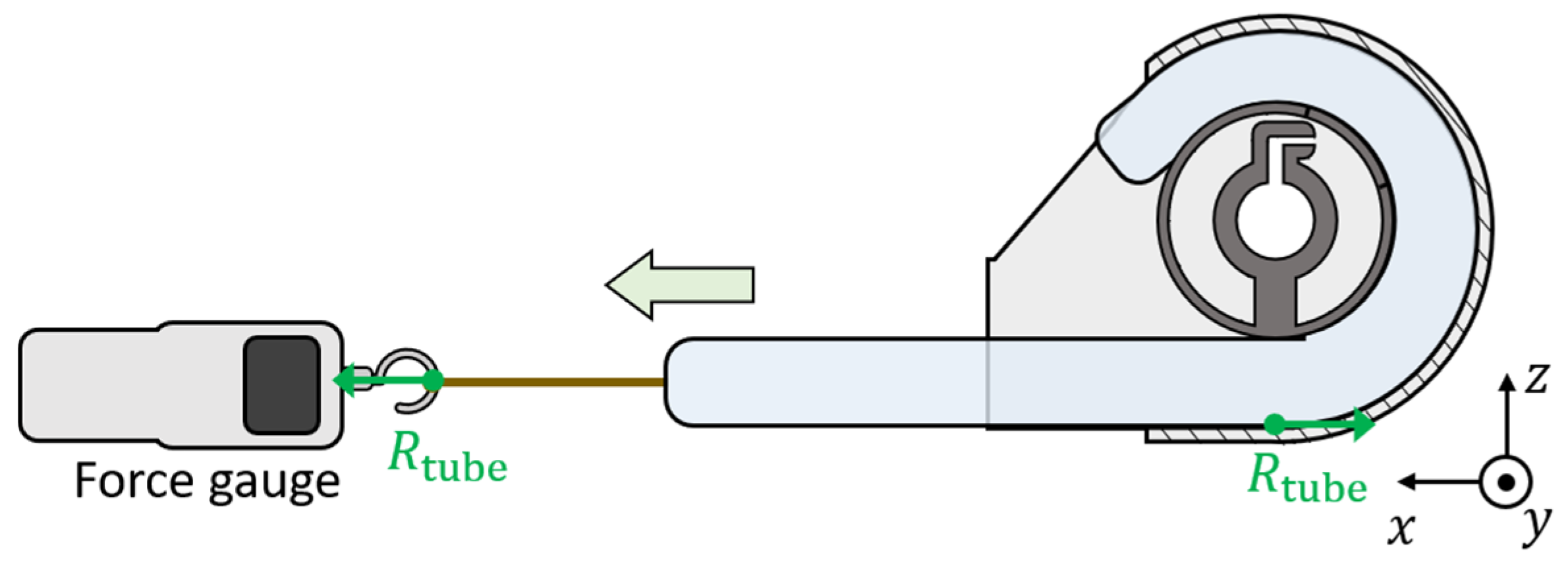 Rtube. An inflatable tube was then inserted in a way that it folded back inside the case around the shaft. Once inflated, one end of the tube was pulled, and the force required for the tube to move through the case was measured using a digital force gauge (ZTS-500N, IMARA Co., Ltd., Aichi, Japan). The inner pressure was varied from 6 to 18 kPa in 2 kPa increments, with each measurement repeated six times.