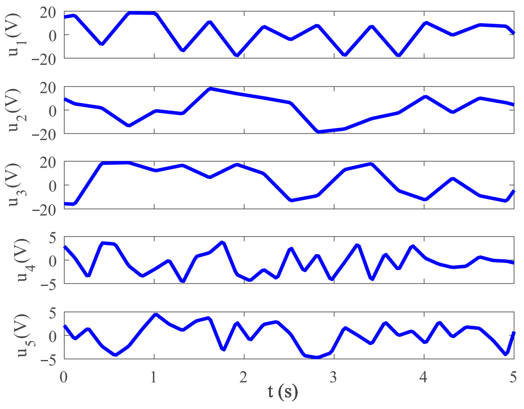 - When one of the event-triggering conditions (33), (34) or (35) is satisfied, let , and the control signal is recalculated. Subsequently, the optimization problem (21) is solved to obtain the optimal control sequence and the predicted state sequence, as follows:The control signal is obtained as