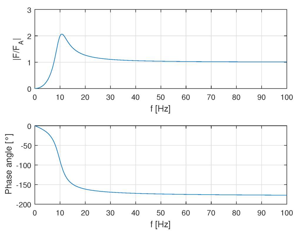 The cut-off frequency is set well below the resonance of the actuator, here at about 5 Hz, and is chosen appropriately.