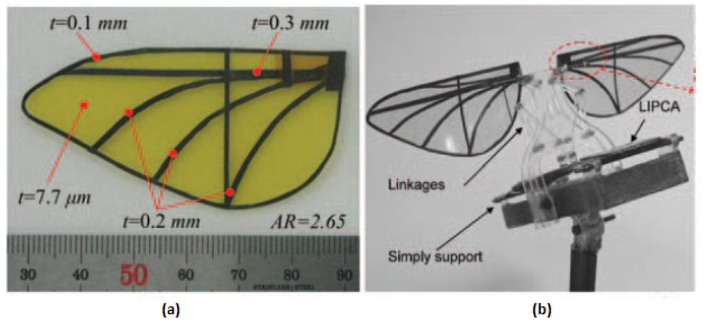 (a) Artificial Hawkmoth wing; (b) Fully assembled flapping system [64].