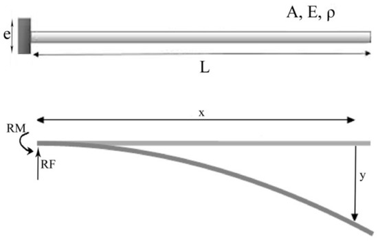 where ki is the constant coefficient of natural frequency for different modes; L is the length; E is the elastic modulus; and I is the planar second moment of area of the nanoresonator. Figure 2 shows loading, mechanical properties and free body diagram of a nanoresonator when it is actuated by transverse base motion. Working in the steady state, the actuator applies constant vibration amplitude on the clamping end of a nanoresonator. Therefore, a base harmonic mechanical displacement is considered as the actuation input (E = D·Sin(t)) of nanoresonator instead of force actuation. D is the input vibration amplitude. This model does not include air damping and it is applicable to high vacuum conditions. Assuming the nanoresonator as a Bernoulli-Euler beam [38], the equation of motion is given by: