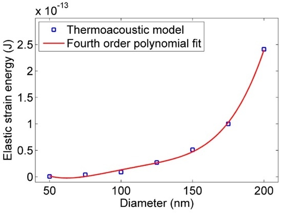 Effect of diameter on the stored strain energy of nanowire. The analytical model matches with the results of the thermoacoustic model ().