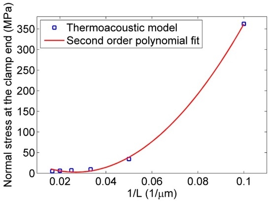 Effect of length on the normal stress at the clamp end of nanowire. The analytical model’s findings match the results of the thermoacoustic model ().
