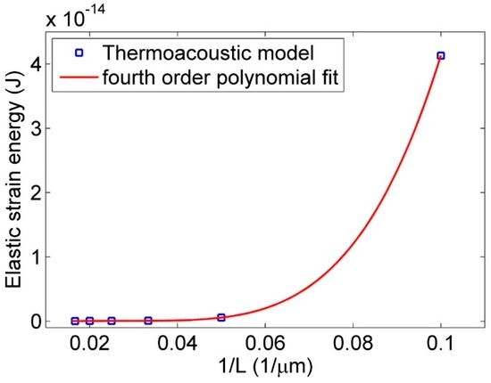 Effect of length on the elastic strain energy of nanowire. The analytical model matches the results of the thermoacoustic model ().