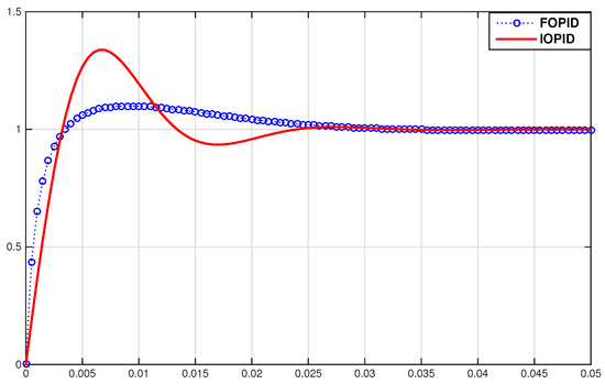 Step responses under the FOPID and integer order PID (IOPID) controllers.