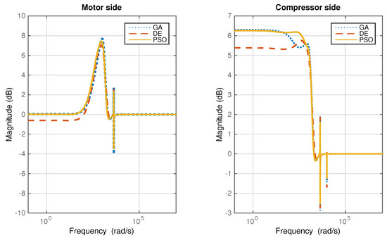 Bode plots of the lateral AMB sensitivity function at the motor side.
