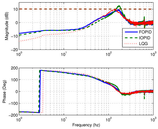 Based on the simulation and experimental results presented in Section 4, if properly tuned, the FOPID controller designed for the rotor suspension outperforms the IOPID controller with only the variation of the integral and derivative orders. Furthermore, the FOPID controller can achieve performance similar to or even better than advanced controllers such as LQG and , while the controller structure as well as the design process of the FOPID are simpler.