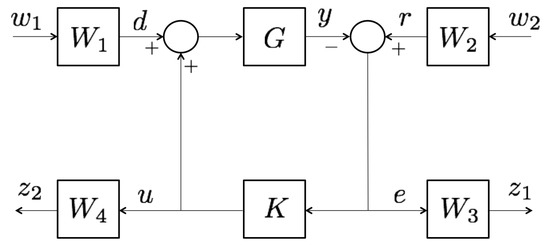 In the above objective functions, the weighting functions are defined in [49], based on the interconnected system shown in Figure 27, as follows,
