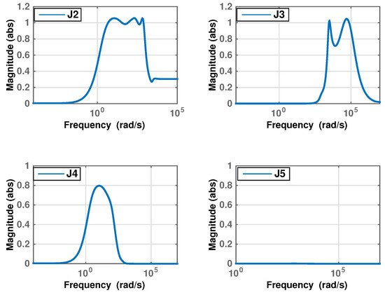 Table 8 summarizes the values of the FOPID controller parameters obtained from the DE optimization. The resulting magnitude plots of all objectives, except the stability objective, are shown in Figure 28.