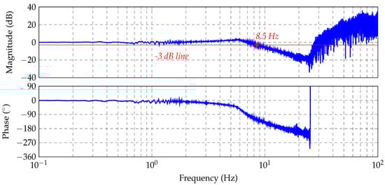 Bode plot of the force tracking test with chirp input (f = 0.1–100 Hz).