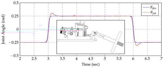 Another important performance metric for the SEAs is the joint position control performance. It is necessary to precisely follow dynamically changing desired positions with a small overshoot, short settling time, and low steady-state error values. In order to test the system performance on joint position control, we used the position controller explained in Section 3.3 with a smooth step input featuring a 0.5 step height. We attached a 2.268 weight at a 20 distance from the joint. Figure 11 shows the result of the position control experiment. The system output shows 10% overshoot and 0.35 settling time for 2% band.