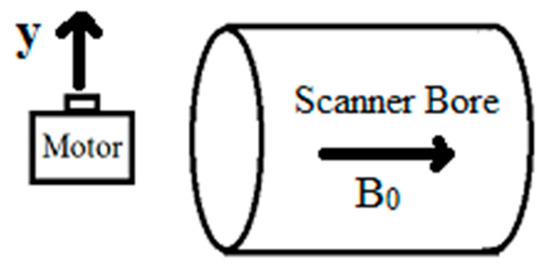 Sufficient time between each run was given to allow the motor temperature to reach room temperature. The motor was placed into the scanner in the y orientation (Figure 4), and the test was repeated while the scanner was off and the motor was on.
