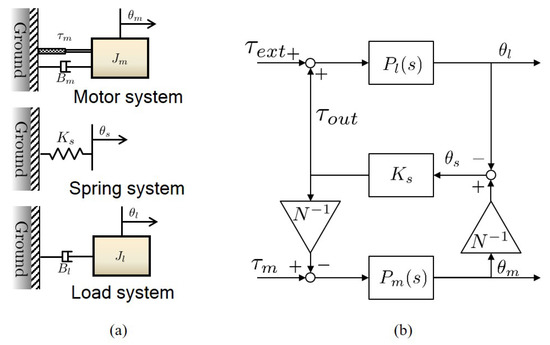 In the same way as FSEA, the angle of the motor is defined as , the angle of the load as and the spring deformation as , and the governing equation of each system can be expressed as follows.