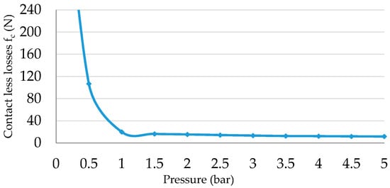 The contactless losses at each air pressure step are also calculated and are illustrated against the pressure in Figure 8. The friction value at Pg < 0.5 bar is significantly high.