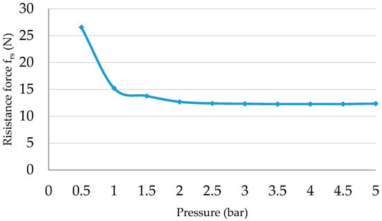 Figure 7 shows that the resistance force is very high at low-pressure values (Pg < 0.5 bar) and its value has been decreased dramatically at Pg = 0.5 bar.