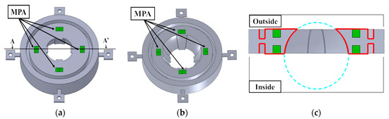New stator construction using SUS304 steel. (a) Outside; (b) Inside; and (c) Cross-section A-A’.