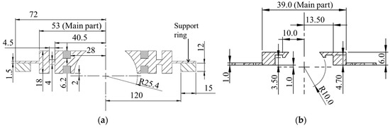 Dimensional drawings of stators designed for used in the MDOF-SUSM. (a) Prototype and (b) ϕ20 mm type.