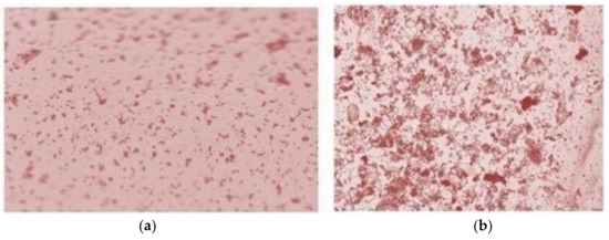To determine the effectiveness of the fluid purification, two separate samples were examined under a microscope. The results are shown in Figure 10. The image in (a) depicts a sample of microparticles in the biological suspension before and (b) after the separation procedure. The quantity of microparticles is increased by 6.5-times.