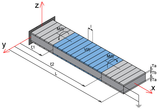 In [22] the action of the piezoelectric plates has been deeply studied and it can be summarized by two torsional moments concentrated at the end of the plates (Figure 1) with: