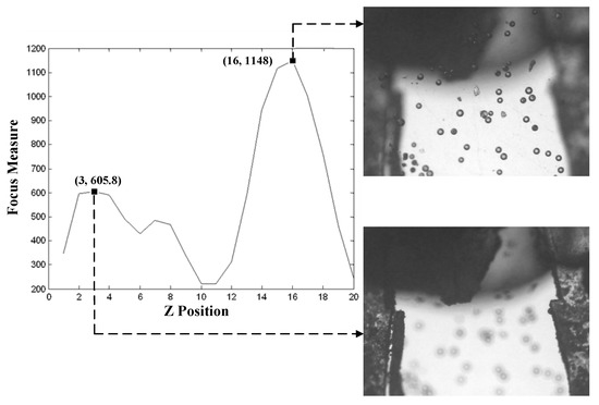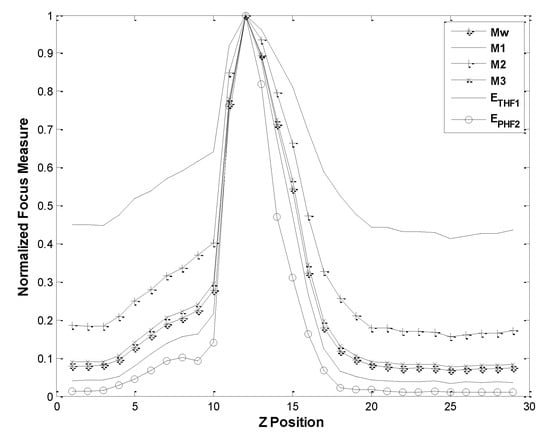 - Vollath, D. The influence of the scene parameters and of noise on the behavior of automatic focusing algorithms. J. Microsc. 1988, 151, 133–146. [Google Scholar] [CrossRef]