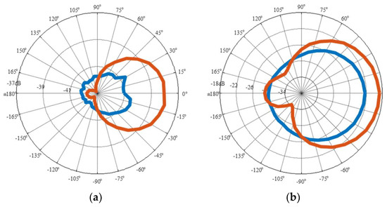 Figure 9 shows the transfer function between the sound pressure level recorded and the supplied voltage. The characteristic response shows two distinct areas. At low frequency, the response is characterised by a growing sound pressure level with a slope of about 40 dB per decades. At higher frequencies, the sound pressure level is instead flat. This response can be physically interpreted. At low frequency, the diaphragm of the DEAP loudspeaker moves as a rigid surface, that is the loudspeaker behaves as a rigid piston. In addition, at low frequency, acoustic wavelength is large with respect to the loudspeaker dimensions and the response is equivalent to that of a monopole. As shown below, this behaviour is respected in the directivity plots which show omnidirectionality at low frequency. A rigid piston stops to behave as a monopole when , where is the wavenumber, is the radius of the piston, c is the wavespeed of sound in air and is the frequency of oscillation. Since is approximately 6 cm, this threshold frequency is about 900 Hz, as indicated in Figure 9. The threshold matches the experimental results for the three tests with additional diaphragms. The tests with additional diaphragms show a higher threshold at 1800 Hz. This behaviour is in accordance with the prediction of Aarts et al. [21], who showed that the behaviour of a resilient disk is different from that of a rigid piston and that its transition frequency is higher. Intuitively, a resilient disk assumes a curved shape which resembles more to a spherical source so that the similarity with a point source is maintained longer.
