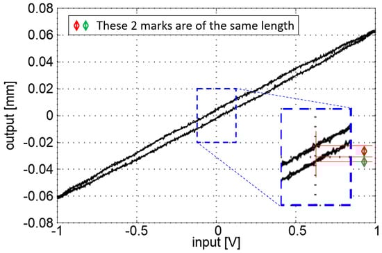 An example of the off-center asymmetric hysteresis loop of the piezoelectric actuator used in this study.